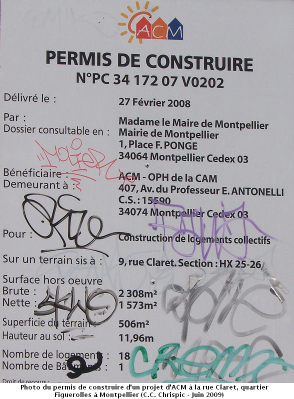 | Permis de construire | Ancien permis : N° PC3417207V0202