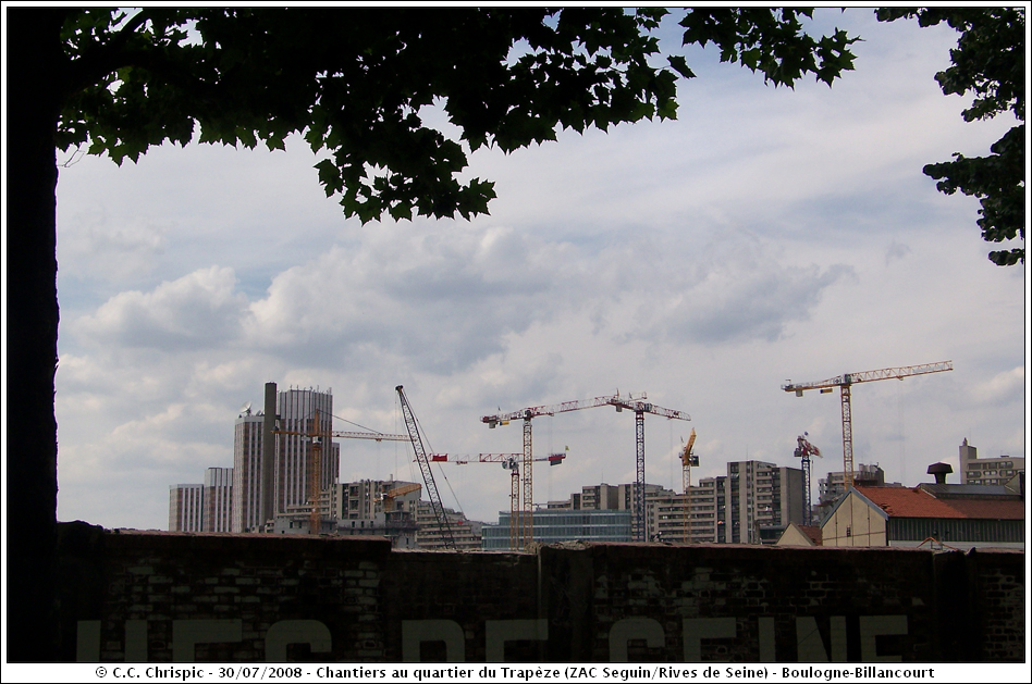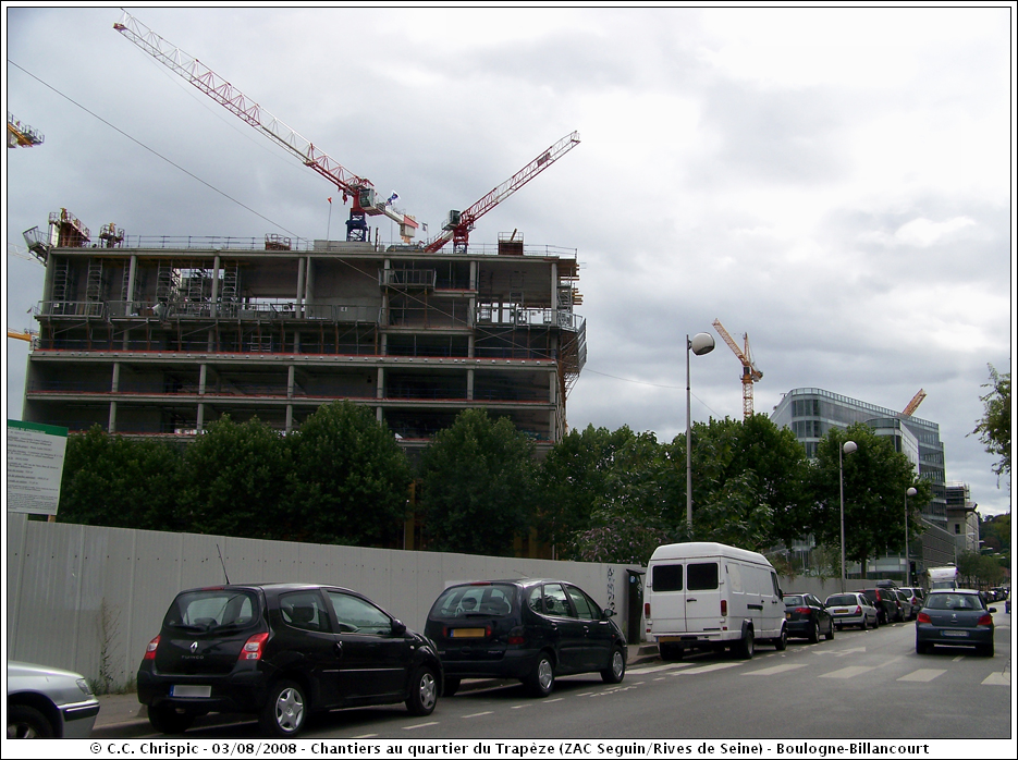 J'ai découvert cette ZAC à l'été 2008 et je n'ai pas été déçu de mes visites. Un vaste espace en chantier, une forêt de grues, des hauteurs sympa, une tour signée Jean Nouvel, une architecture moderne, un plan structuré et dense, des espaces publics soignés, un parc bien aménagé... Chaque montée dans la capitale me vaut un passage presque obligatoire par cette ZAC afin de voir son évolution. Ce projet est situé sur les terrains des anciennes usines de Renault. Sur cette page, je vous présente les chantiers de la ZAC dans leur ensemble ou bien des projets dont je n'ai pas souhaité y consacrer une page à part entière.